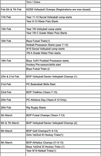 Here is a list of important dates for term one and the links to register for our summer and winter sports trials and preseason programs. Information regarding venue & times etc can be found on the registration form or by visiting the PC Sports office for a consent form.