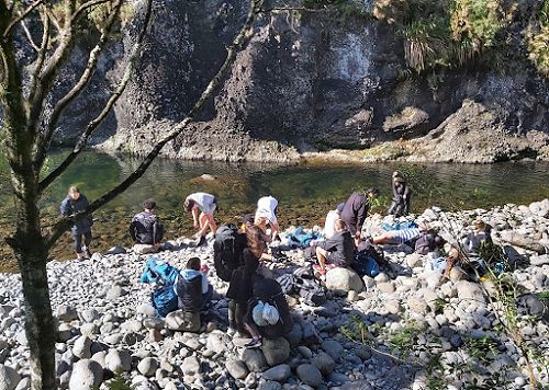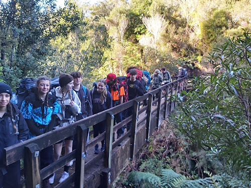 The added bonus of having such beautiful wilderness on our doorstep in Tauranga is that we have a rich local history to learn about. Tangata whenua traveled through the Kaimai Ranges in search of food supplies, and the gold miners needed wood to build houses, so they built a tramway to carry the milled kauri trees. There are a few endangered species that call this area home, and several introduced species are making pests of themselves. All this was new learning for our students, and gathering such knowledge where it happens adds layers of value and meaning.