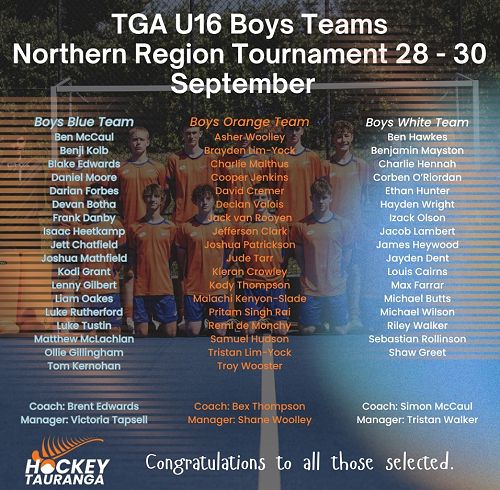 A massive congratulations to these students selected for the Tauranga Under 16 Teams: