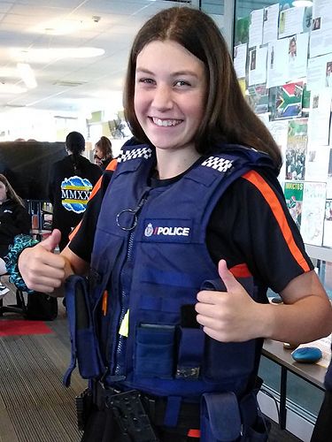 The girls were pumped to try on her vest and ask her questions about both her life and career.
