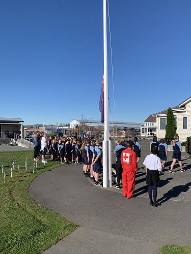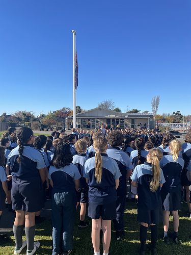 Thank you to the Guard of Honour and the Year 6 team who did a great job running the service. This year Mrs Pamela Marshall played the bagpipes while the wreath was laid.