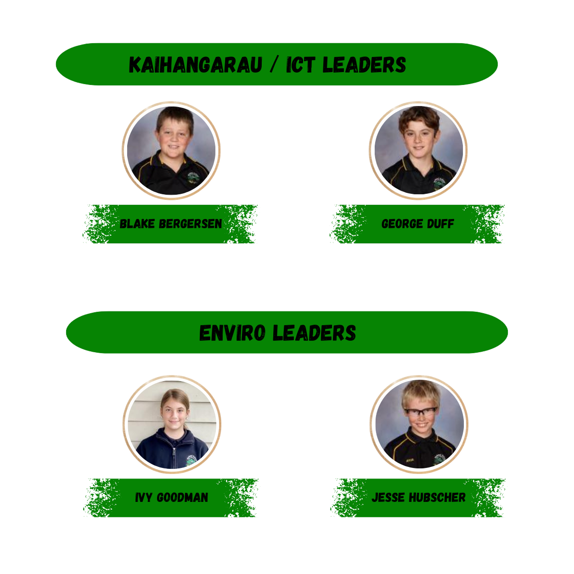 Our Kaihangarau / ICT, Enviro Leaders and our Library Leaders all work hard with all our school events and environmental projects throughout the year.
