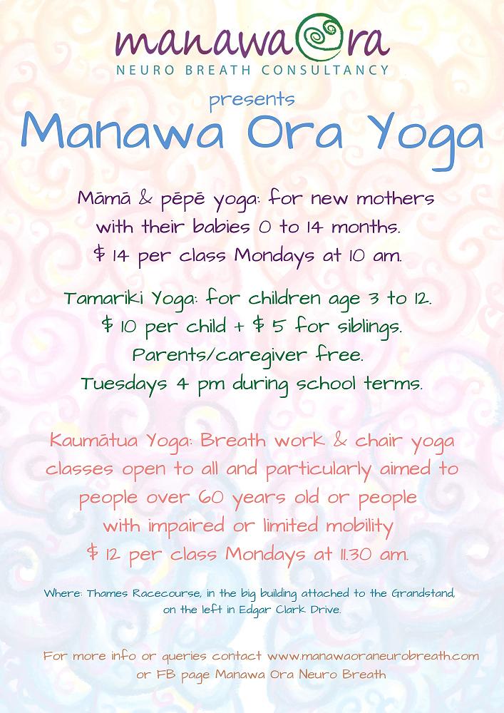 Yoga classes for all ages with Manawa Ora Neuro Breath Consultancy.