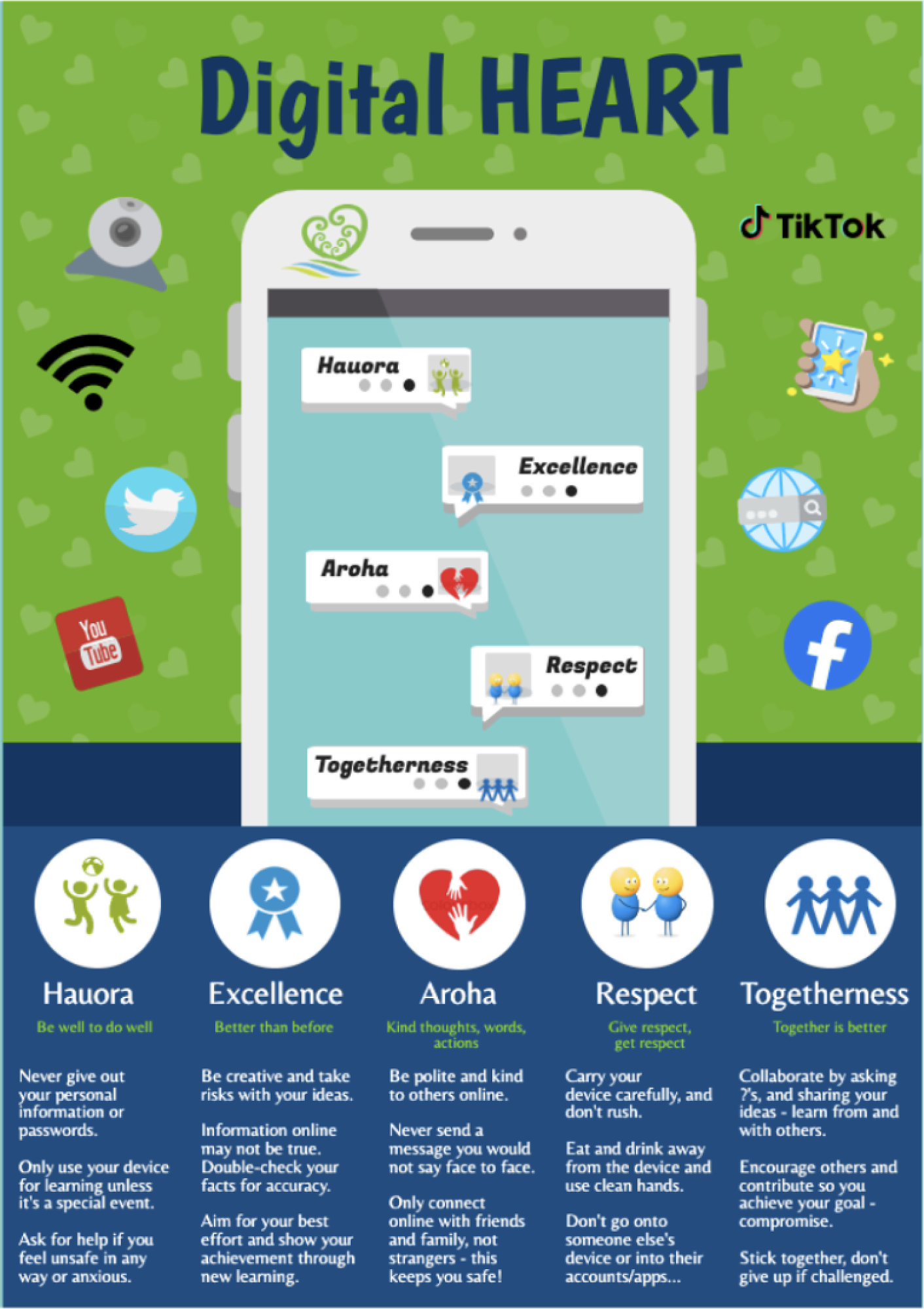 We endeavour to do our best to keep children safe online. There are a number of ways in which we do this. First and foremost we use our school HEART values to educate the children in making good choices when learning online. We also have Linewize and N4L infrastructure in place which allows us to filter and view online activity. We follow Netsafe New Zealand's recommended best practice and encourage you to look at their Parent Portal.