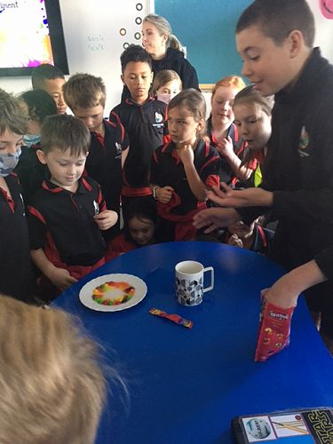 Some of our senior students took initiative and demonstrated the power of peer teaching, by introducing the younger children to experiments that demonstrated reactions. We watched pebble lollies dissolving into swirls of rainbow colours and a bottle of coke exploding like a geyser when Mentos lollies were added to it. That one set off a huge cheer from the excited audience.