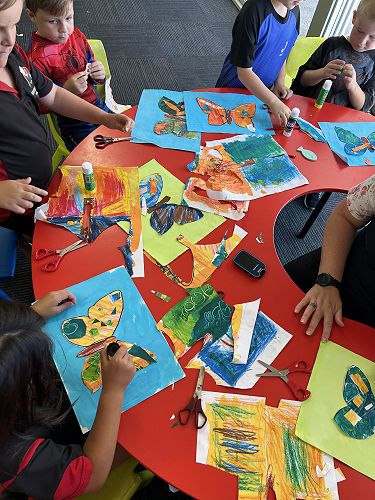 We were patiently waiting for it to hatch and it finally did during our maths time on Wednesday. Everyone was so excited to see it spread its wings. It just so happened that we have been learning how Eric Carle, the illustrator of The Hungry Caterpillar, creates his amazing collages.