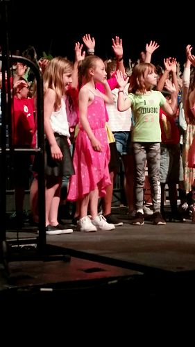 25 of us traveled there on Tuesday for our rehearsal. We didn't need the radio on the bus because we kept the driver entertained with our singing! We were the first school group there and we got to sit in the front rows. Jacqui Clark and Nathan King helped us to warm up our voices. We practiced all the songs we were going to sing that night. We even added actions. The audience was in for a surprise that night.