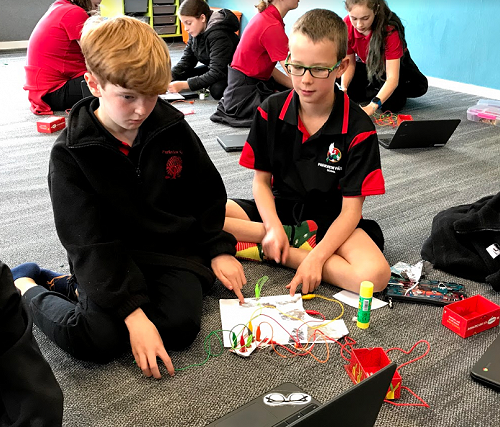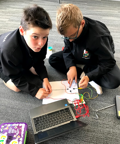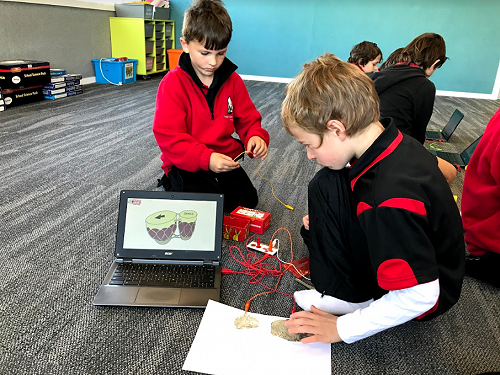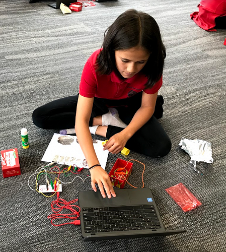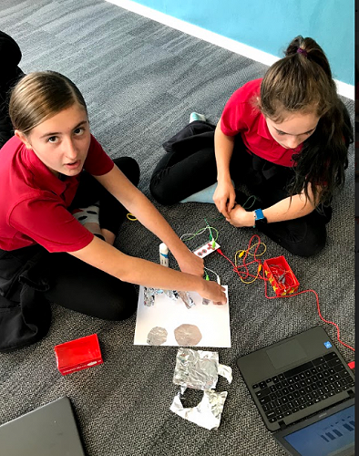 This week the group created their own bongo drums and piano out of paper and tin foil. They connected the Makey Makey boards to their creations and...presto! Their instruments came to life!! The group had loads of fun taking their instrument creations to the next level and continuing their learning about what is or is not conductive.
