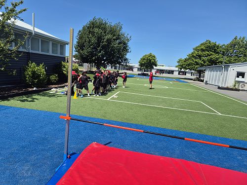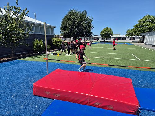 The Pukeko team have been preparing for the junior athletics day in our PE lessons this term. On a Monday and Thursday the classes have been taking turns using the athletics equipment to practice a range of athletics skills. So far they have done long jump, shotput and high jump.