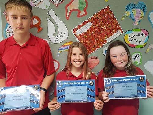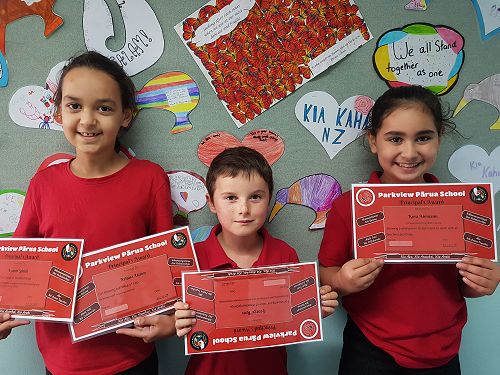 Congratulations to all of our students who received Principal's Awards for displaying our Parkview Pārua School Values.