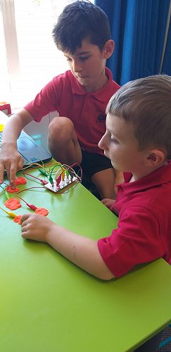 On Monday, Room 17 and 18 worked together with Room 4 and 5 to teach them how to use MakeyMakey.