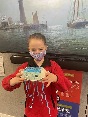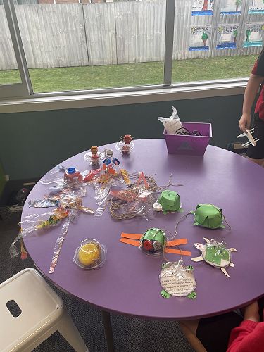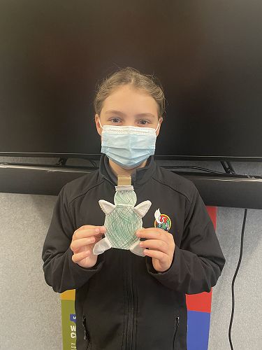 To send a message about the plastic that ends up in our oceans the Kererū team made sea creatures from recycled materials. The students used materials such as empty milk bottles, cardboard and bread bags. These sea creatures show the harm that we are causing to our ocean animals. Next week we will focus on writing a letter to someone explaining how they can reduce their environmental impact.