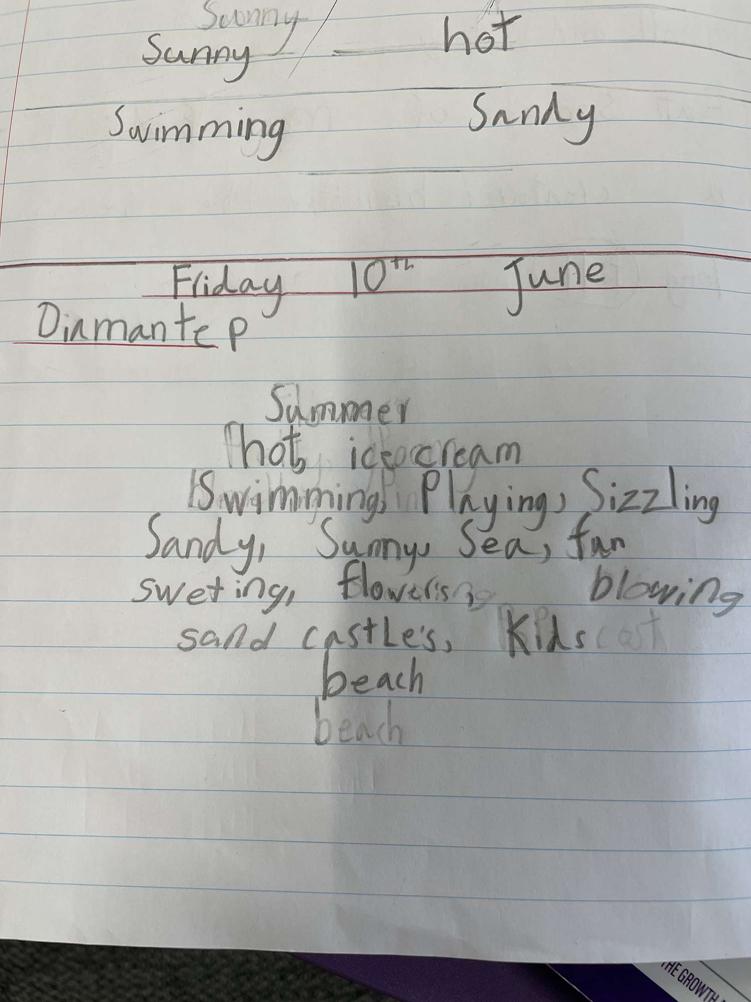 Diamante poems are similar to cinquain's but are 8 lines long and shaped like a diamond.