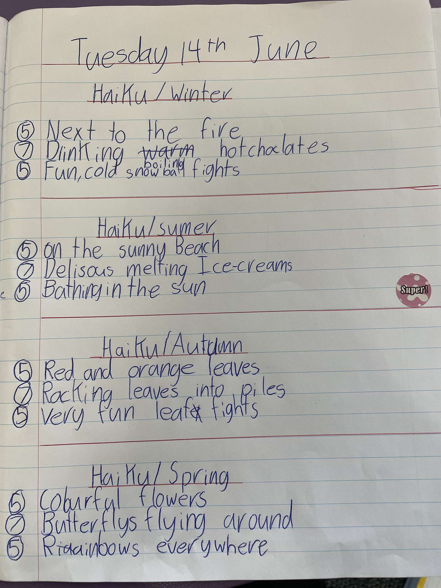 The writing focus in the Kereru team for the last two weeks has been poetry.