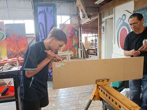 Inquiry: We have had some amazing projects continue to develop from our inquiries and we are super excited to share some photos of these below in our newsletter. This week we had a group of lads travel to Lyttleton to design a carving for our Kura. A huge thank you to Emma, for providing transport.