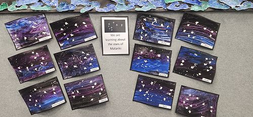 Art is a lovely way to embrace Te Ao Māori. The children loved making the feathers and decorating our korowai cloak. The cloak represents heritage and skill passed down through generations. We also did some fabulous art as a celebration of matariki.