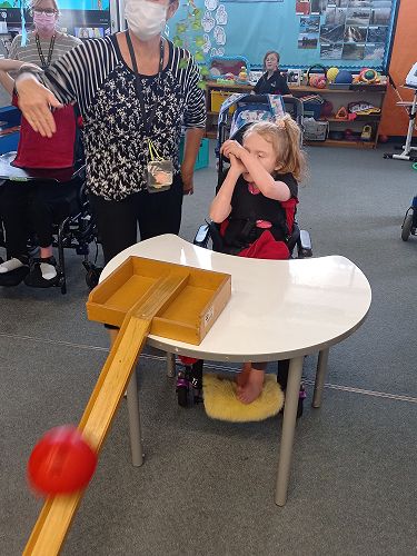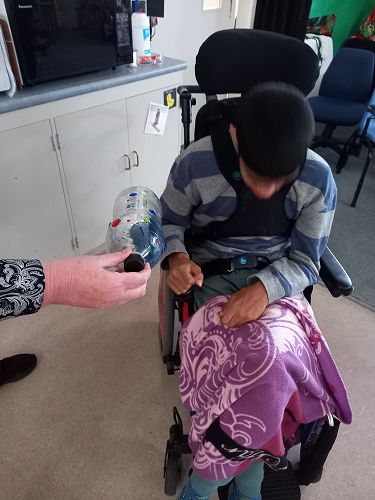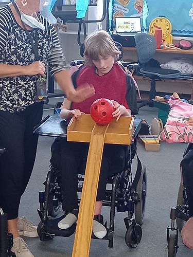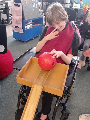 We have also had a go at some games that test our physical abilities. This weeks example is Boccia. The game involves throwing leather balls onto a small indoor court, with the aim to land the ball as close as possible to a white target ball. We started with a ramp, a soft ball, and some tins filled with noisy object to get us underway.