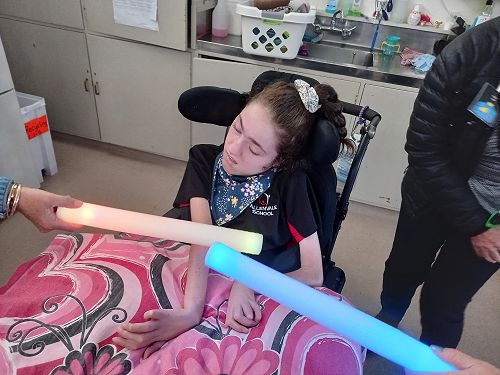 Each week we come together for a dance session with our resident DJs Bex and Daisy. They take us through a range of music genres while the class moves around the dance floor, interacting with a range of sensory tools. Bex has put together some new and exciting things equipped with flashing lights to immerse us in the moment.