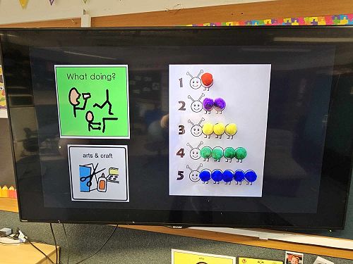 During term 2, we have also noticed a consistent increase in the connections made between our visual timetable, our slideshow visuals, the visuals we carry with us and around the classroom. Our students are recognising 'real life' reasons and opportunities to use these communication visuals and they are becoming intrinsically motivated to use them to gain reward (communication of a need or want).
