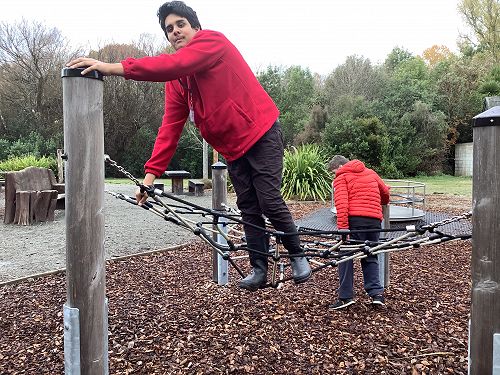 Team Kea is fun because of the toys in the trough. My favourite thing is the swing. I am sad the swing is broken. I feel happy when we go to the park. Olivia