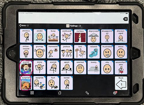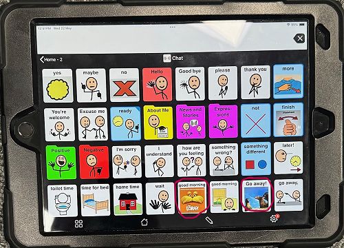 Model an AAC system that is personalised for your young person and incorporates their gestalt language. Work with your SLT to get the right system in place or adapt the one you have. See photos attached to get an idea of how this might work for your GLP.