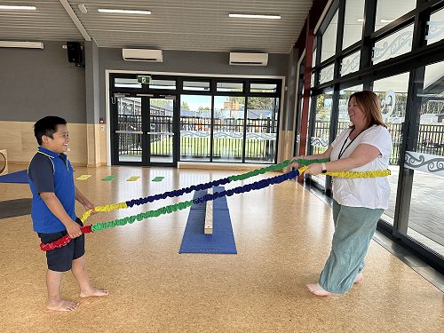 This weekly session allows small groups of students from our unit a chance to go on an outing to Pītau Allenvale, where they have a very busy, fun filled session in Manawa (the hall). We are very grateful to two of our specialists, Katie and Vanessa, who set up the equipment before we arrive and help us during the session too.