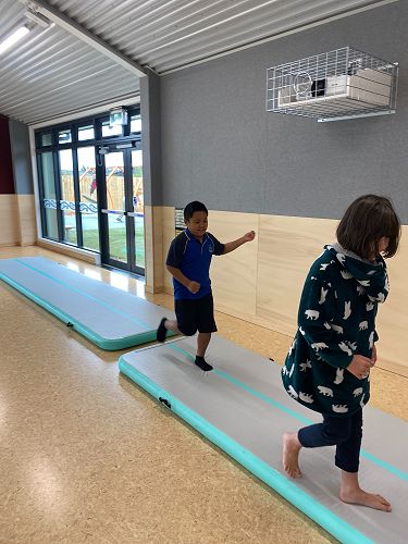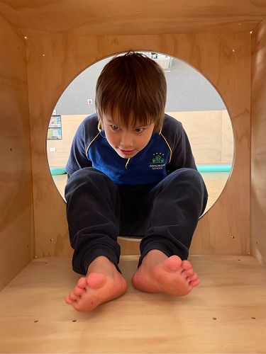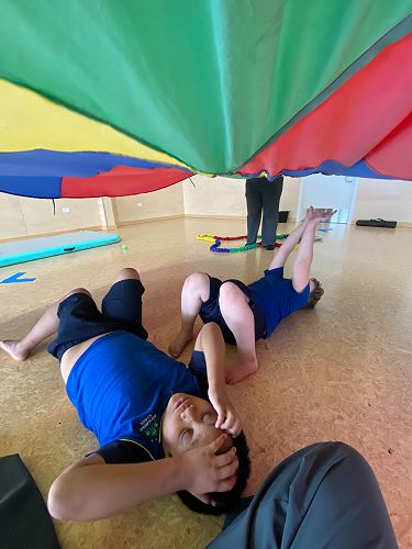 Our students get to use a variety of different equipment to move their bodies in new and challenging ways, and burn off a bit of energy - which has been particularly useful during the cold, wet winter months. Sometimes we run, or climb, or jump, or balance. We use our arms to throw things at targets, to slide on the scooter board, or to move equipment to different places. And at the end of each session we practice relaxing and breathing, while listening to calming music and lying under the parachute. These sessions are a great way to practice our school value of Ora - looking after our bodies and wellbeing.