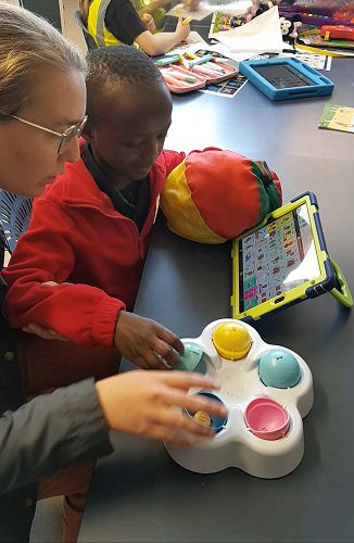 Promoting play and social interaction with preverbal children often involves using visuals and other nonverbal communication methods to engage and support development. Below are the many different ways that we weave communication into our school day with our students.