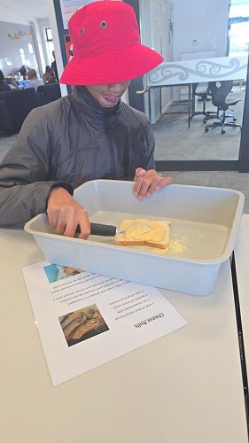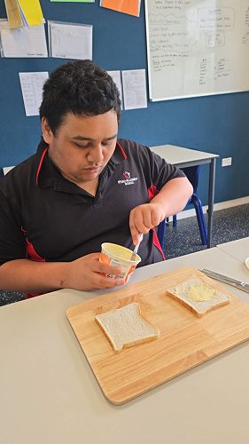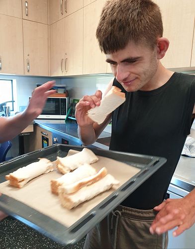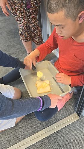 This week for cooking we made cheese rolls! It was a smash hit for sure. Our students began with watching videos and looking up the recipes in our classrooms, afterwards we assembled and checked we had all of our ingredients before cooking our cheese rolls. Of course the best part came at the end when our students got their have their cheese rolls at lunch time.