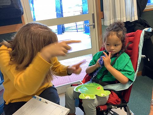 In Room 15 we welcome specialists who come into our class each week to offer support and expertise. Virginia from BLENNZ (Blind and Low Vision Education Network NZ) and Tina from Ko Taku Reo (formally van Asch Deaf Education Centre) are two of our valued visitors.