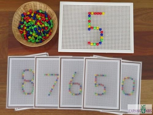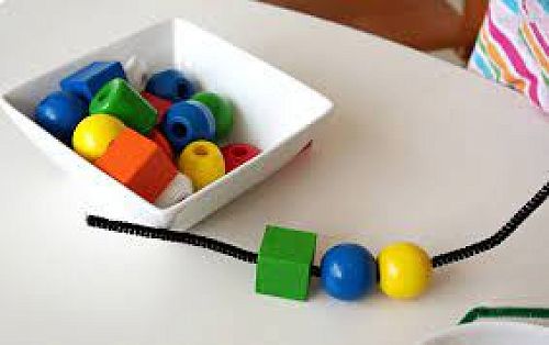 These activities can be linked to different areas of the curriculum, for example: sorting coloured pom poms and other objects with tongs, or making and continuing patterns by threading coloured beads for maths, making letters and numbers out of playdough or pegboards.