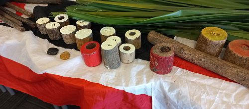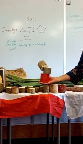 During the workshop, we explored games such as matamatarongo, honga, ti-uru, tangatanga, pukao, and patikitiki. Ti-uru, specifically, traditionally used a lightweight piece of Tī Kōuka (cabbage tree) for passing, catching, and scoring.