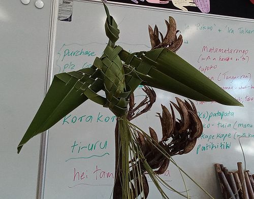 One memorable aspect of the workshop was weaving a Tui using harakeke. The manu (native bird) is used in the toko-tuia protocol in which tui do the mihimihi or welcome. The tui is now prominently displayed in our hub, serving to welcome students and enhance their well-being while encouraging positive outcomes.