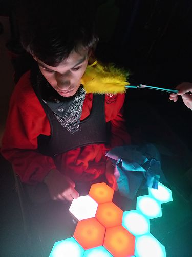 Mr Poulter has very kindly shaken the "purse" so we could purchase our amazing fibre optic lights and the money we make from selling scones each week goes into buying all sorts of lighting and sound equipment that add to the experience of spending time in the room.