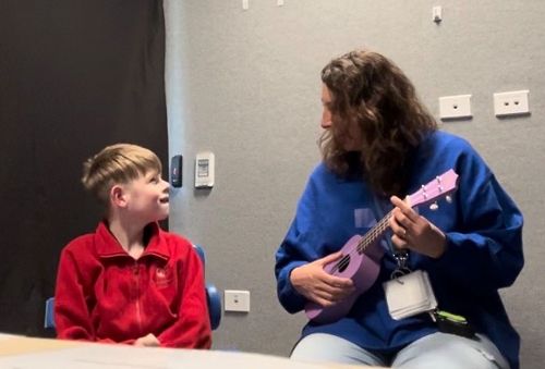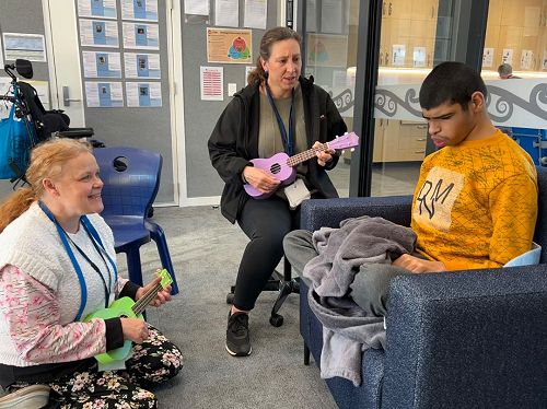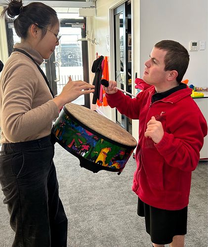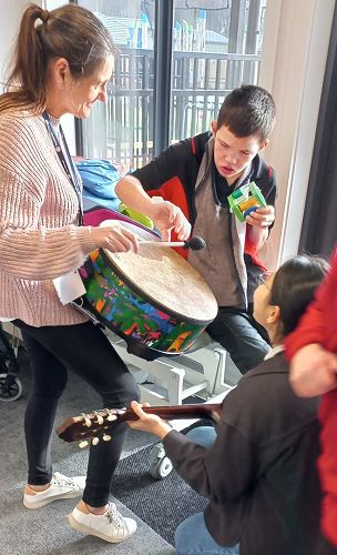 Our Takare Senior students have been participating in interactive music-making sessions for the past several months. These fun activities are always person-centred and adapted to the strengths of each student. This non-verbal medium has proven to be a means of communication, of self-expression, social interaction and enjoyment.