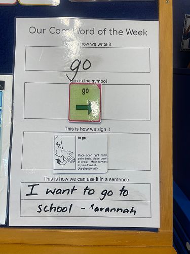 We are focusing on one core vocabulary word each week as this can really help in building a strong foundation. We have started with the word “go” and have been using it when completing various activities and in different scenarios. Ideas for activities to do at home will be posted on Seesaw each week. Using the word “go” at home can be both fun and practical.