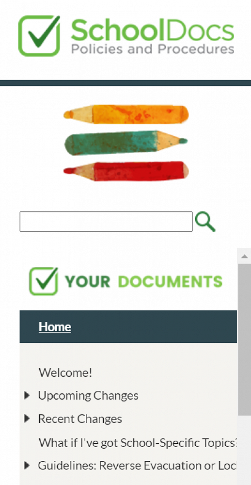 From there you will have access to all our school's policies and procedures. If there is a certain policy you are looking for you can type a keyword in the search bar on the left hand side of the website.