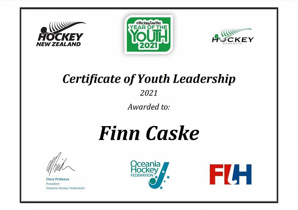 Congratulations to Year 12 student Finn Caske, who has been awarded a FIH Youth Leadership Certificate. Earlier this year Finn was presented with the New Zealand Hockey ‘Outstanding Young Person Award’ in recognition of his service to Hockey.