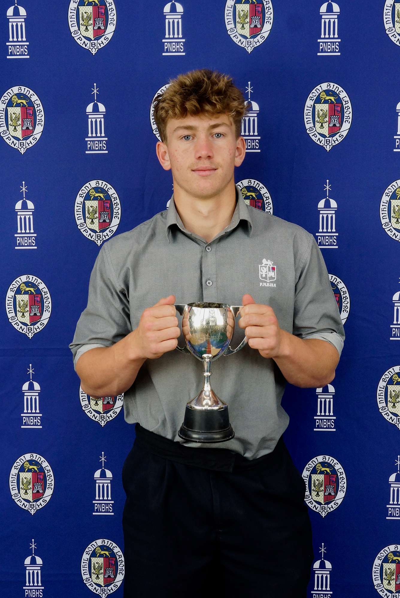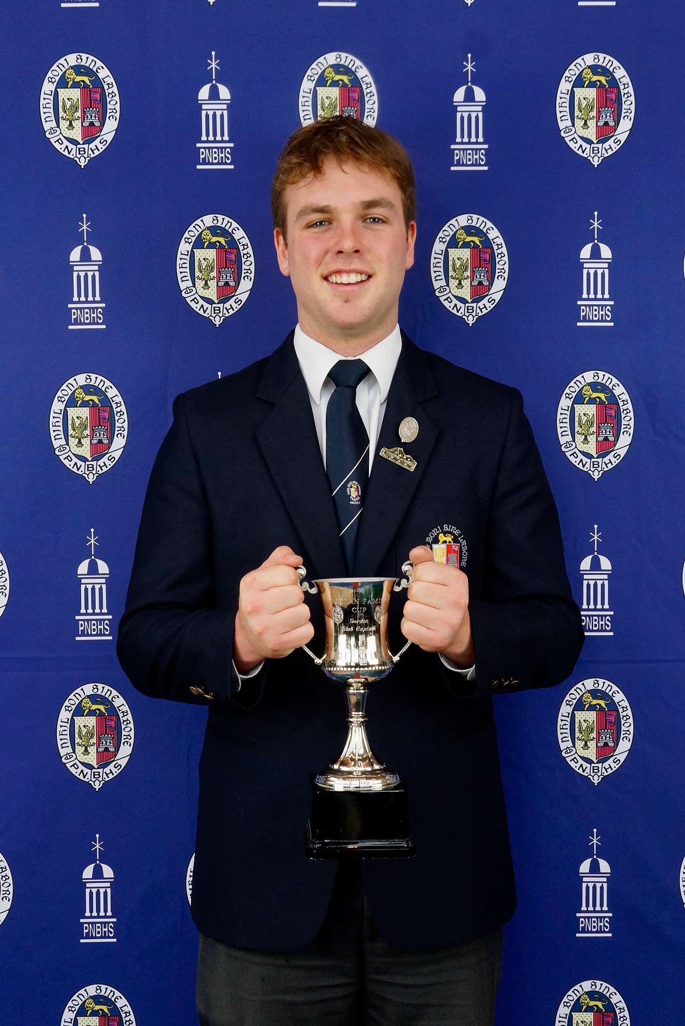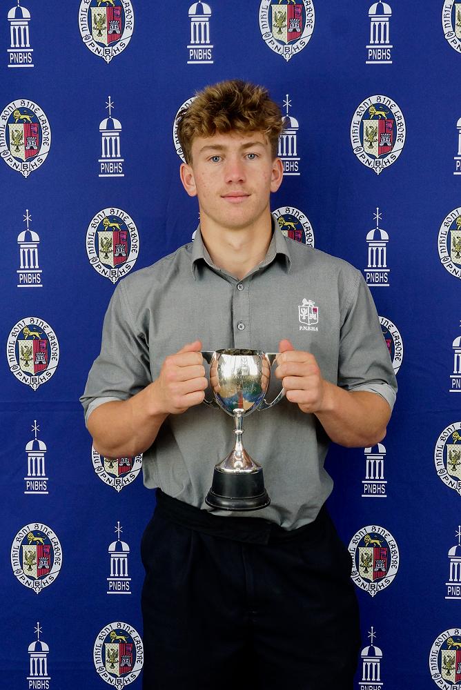 Gordon - Club Captain Brody Zander with the Doolan Family Cup for Leadership in Gordon Club — Image by: PNBHS
