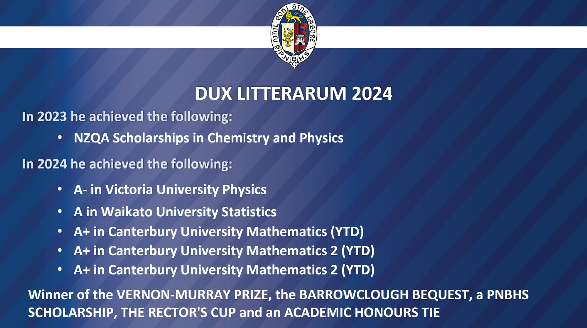Congratulations to Toby Rea - Dux Litterarum for 2024 PNBHS — November 3rd, 2024 Toby Rea - Dux Literarum — Image by: PNBHS Toby Rea - Dux Literarum — Image by: PNBHS Toby Rea - Dux Literarum — Image by: PNBHS Gallery