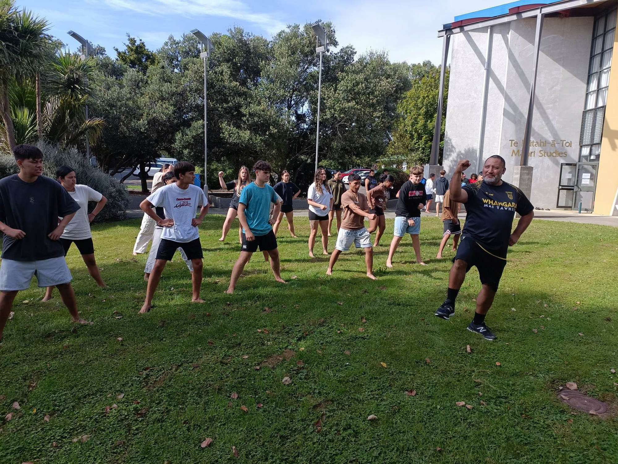 A group of young men represented Palmerston North Boys’ High School at a kapa haka workshop held recently at Te Putahi a Toi, Massey University.