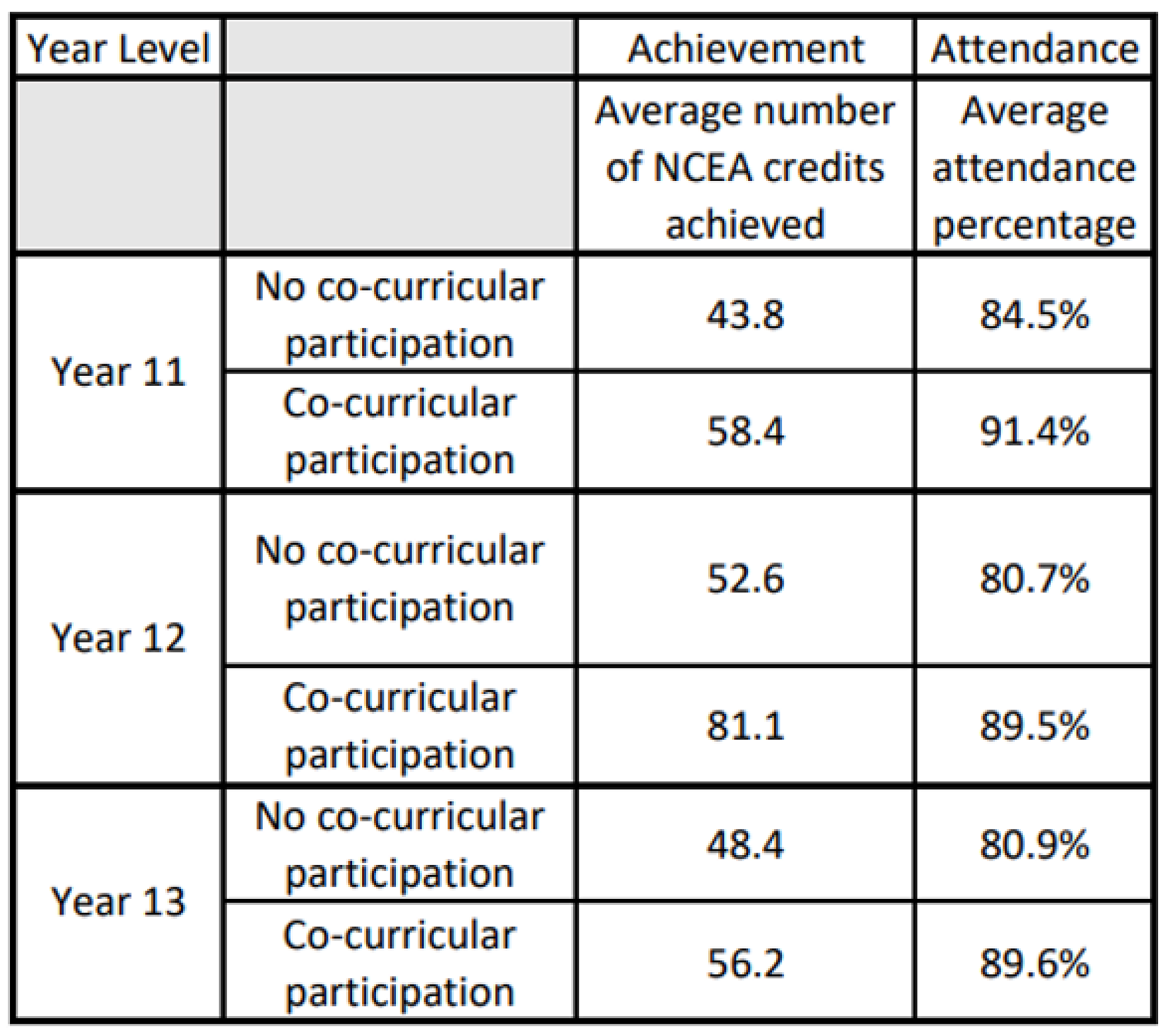 Again the same pattern is evident - young men who are involved in co-curricular activities achieve, on average, a greater number of NCEA credits and attend school more regularly than young men who are not involved in our co-curricular programme.