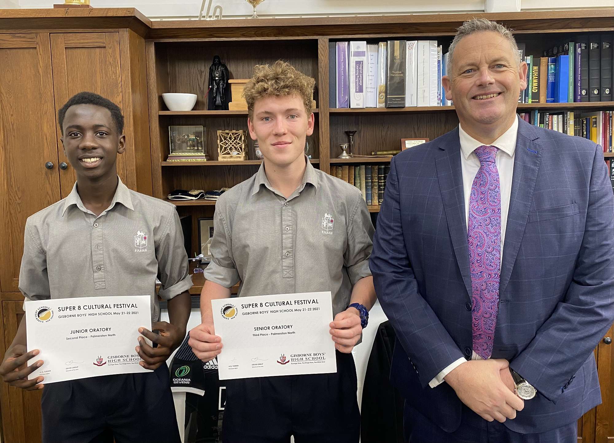 Earlier in the year a number of PNBHS groups took part in the annual New Zealand Super Eight Schools Cultural Festival which was hosted by Gisborne Boys' High School. Certificates were recently presented to the groups and individuals who placed in the top three competitors in their respective competitions. Congratulations to: