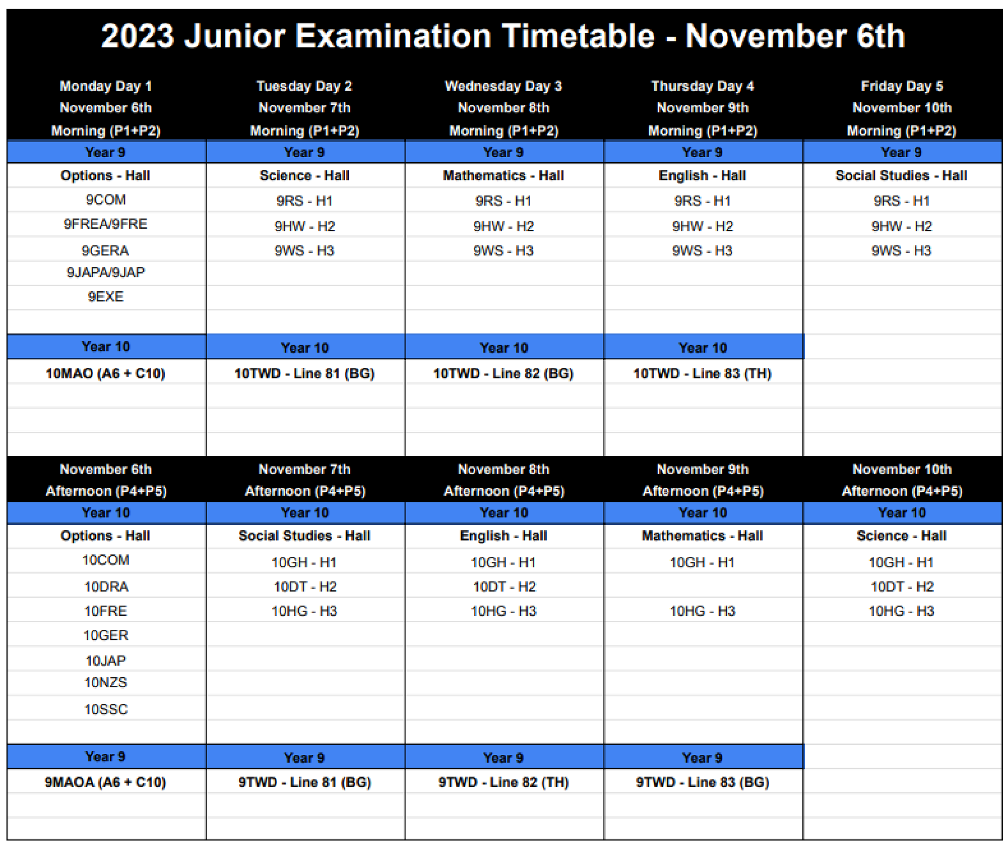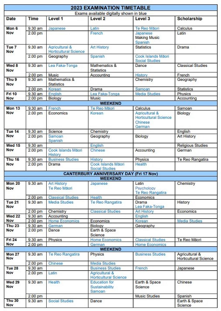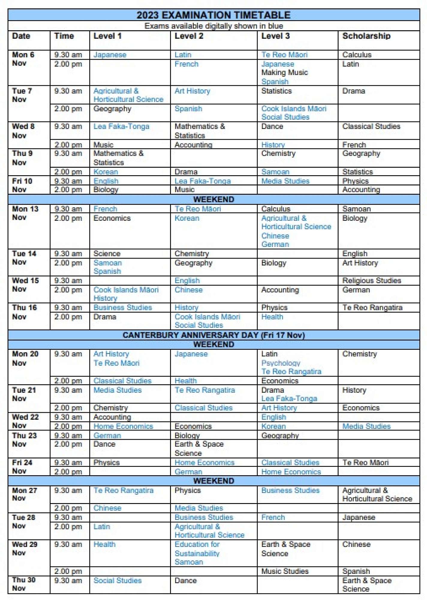 - Monday 6 November - NCEA and Scholarship examinations begin