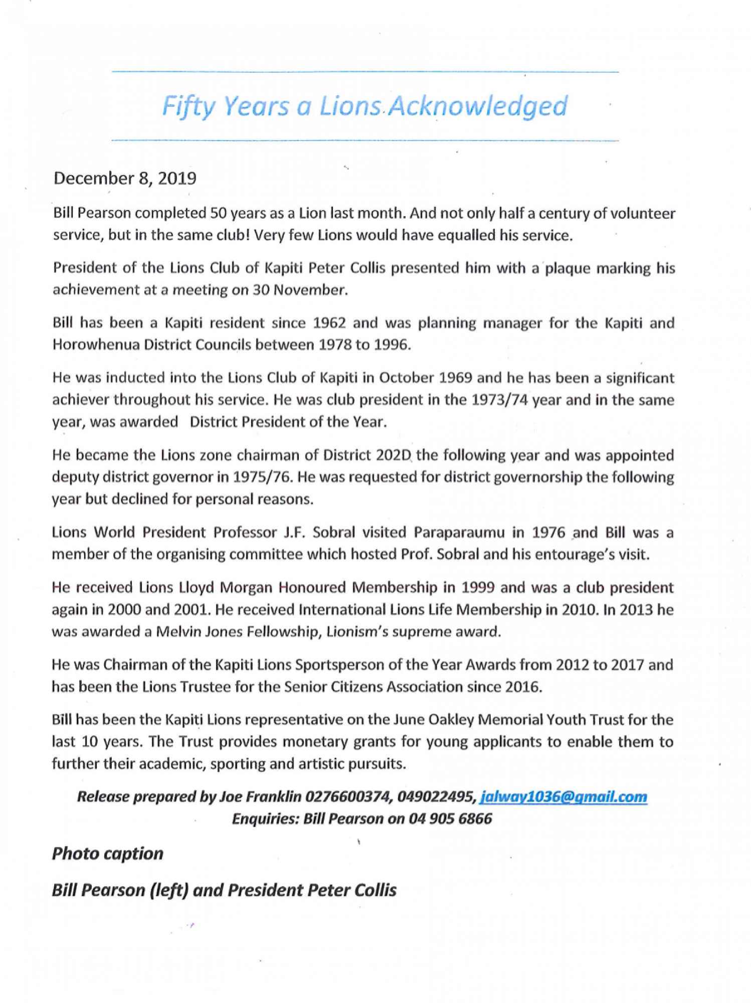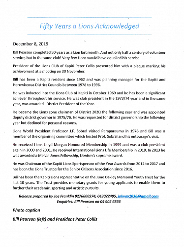 Photo by PNBHS Loyal Old Boy Bill Pearson PNBHS — July 19th, 2021 Loyal Old Boy Bill Pearson being recognised for his contribution to his Lions Club. Image by: PNBHS Gallery