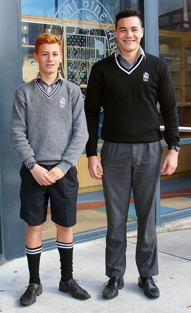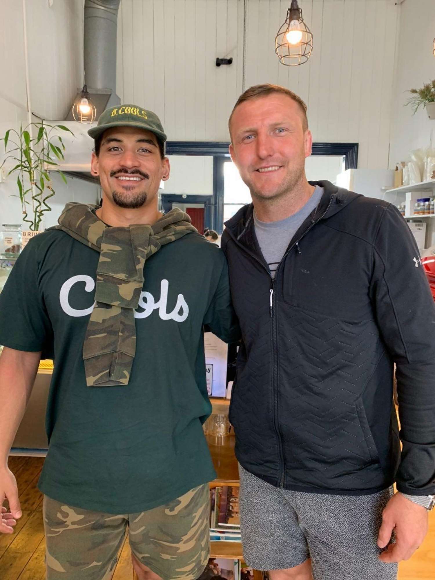 Old Boys Willie Cribb and former Wales International Hadleigh Parkes having a catch-up in Auckland recently.