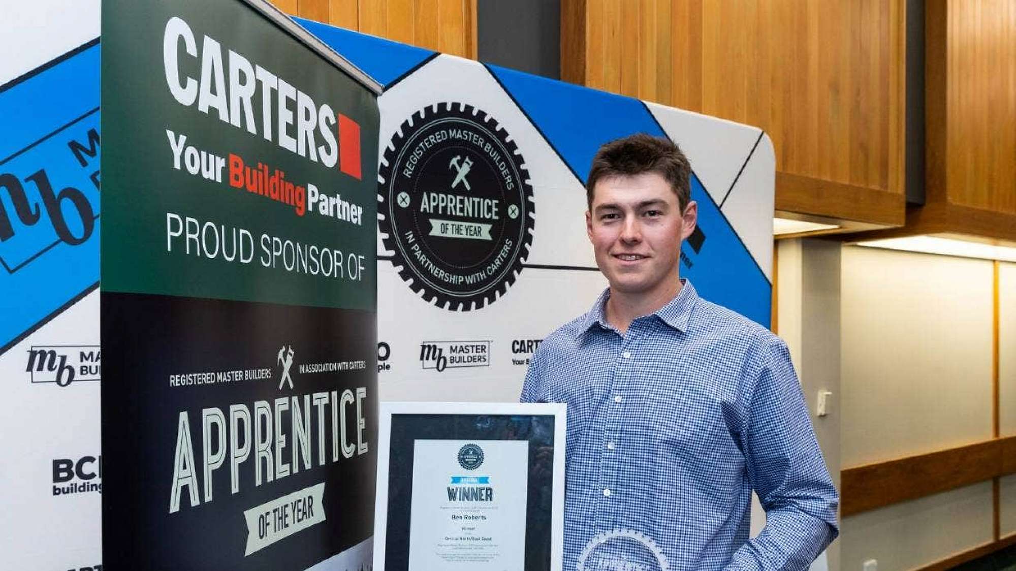 Ben a young Palmerston North builder has won the 2020 Central North Island and Hawkes Bay-East Coast Master Builders Apprentice of the Year.