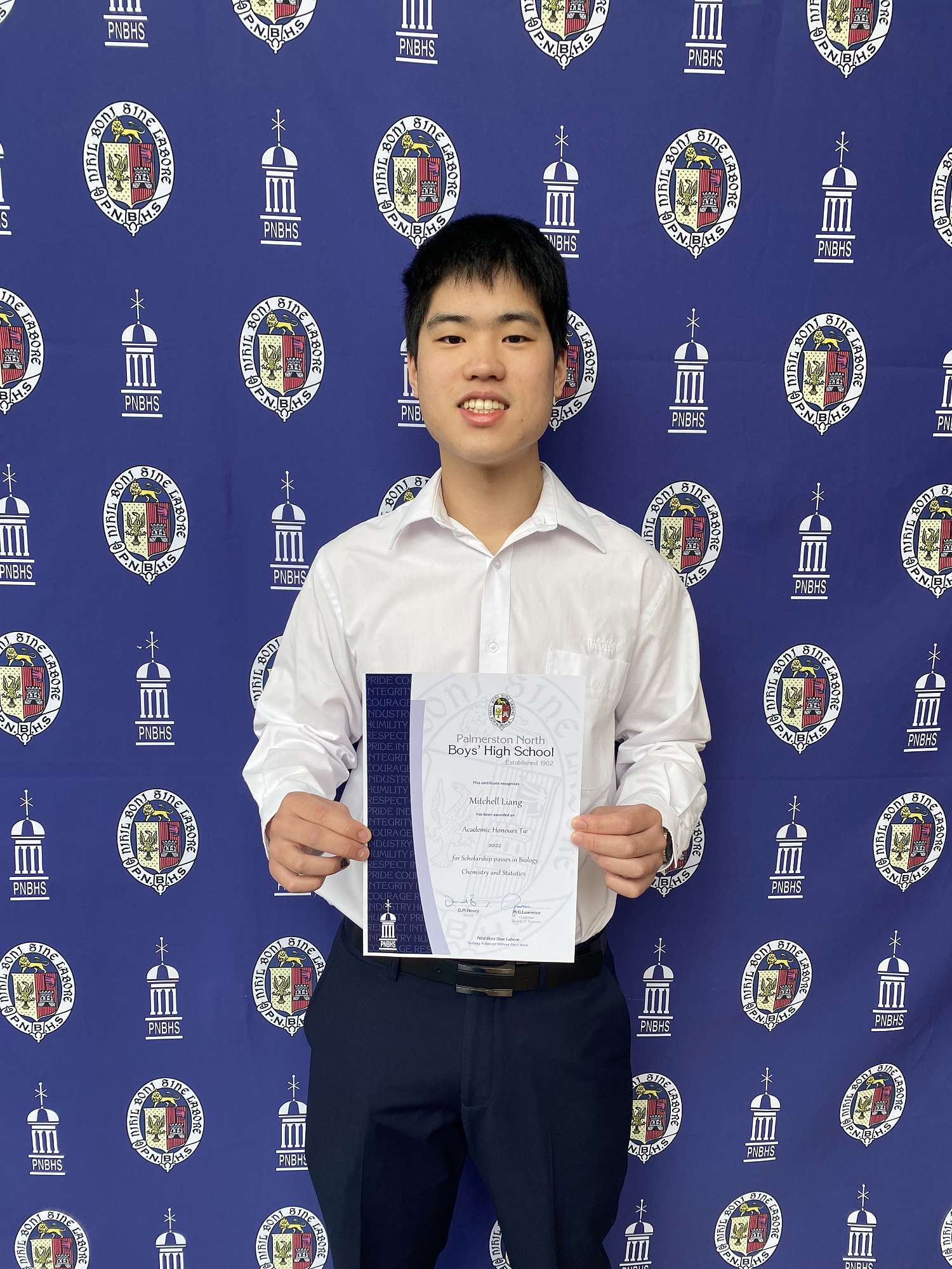 At an assembly earlier this term we recognised our top-performing students in Scholarship examinations in 2022. Scholarship is the highest New Zealand secondary school qualification and provides a level of academic challenge significantly above NCEA Level 3. Our top performing student was 2022 Dux Litterarum Mitchell Liang and it was a pleasure to have Mitchell with us for our assembly. Mitchell achieved Scholarship passes in Biology, Chemistry and Statistics, earning an Academic Honours Tie and his name engraved on the Scholarship Honours Board in the hall.