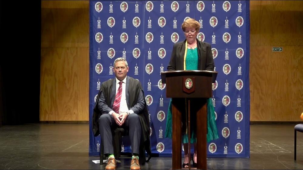 In recognition of her outstanding service and dedication to the academic life of the school, Mrs. Dickinson was presented with a Palmerston North Boys' High School Academic Stole.