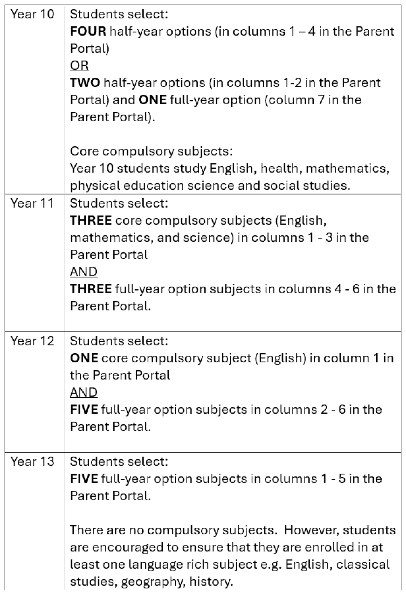 Instructions for making your son's subject selections via the Parent Portal can be downloaded below.